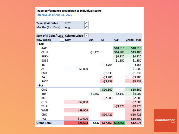 Breaking down my August performance: 17 trades, 1.47x win/loss ratio, and the golden rule of options trading
