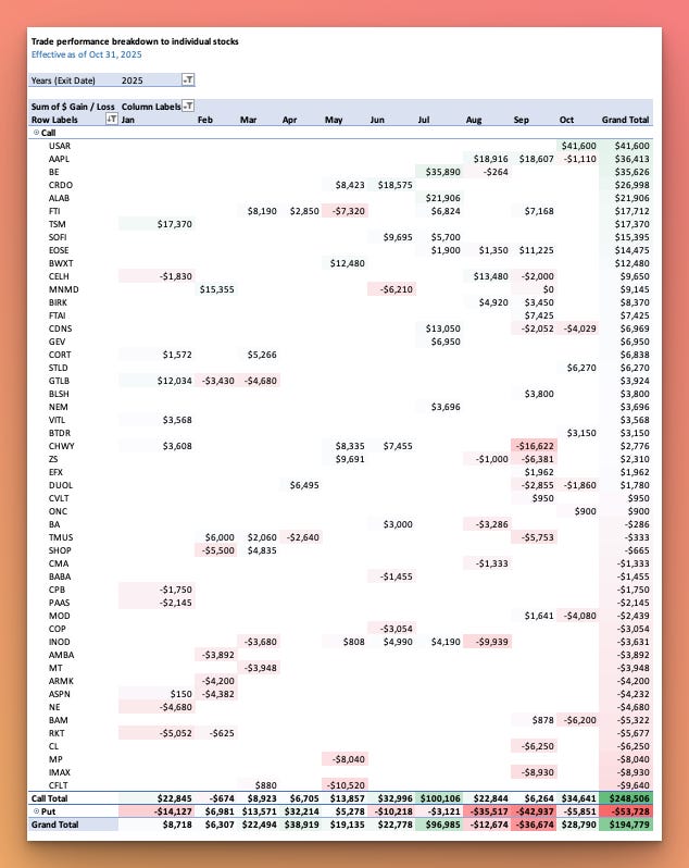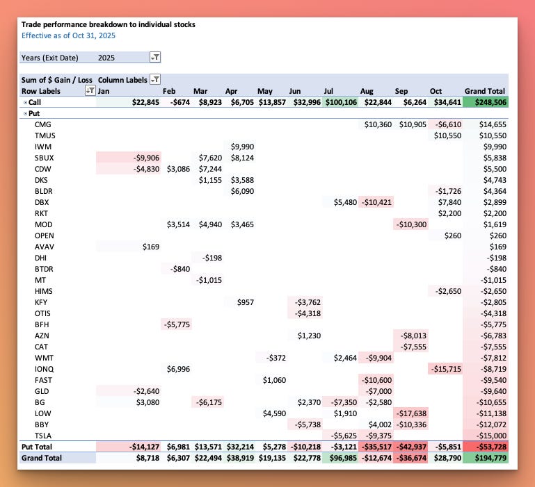 Alongside these monthly performance reports, I share real-time trade actions and market views in the Options Playbook section of this newsletter.