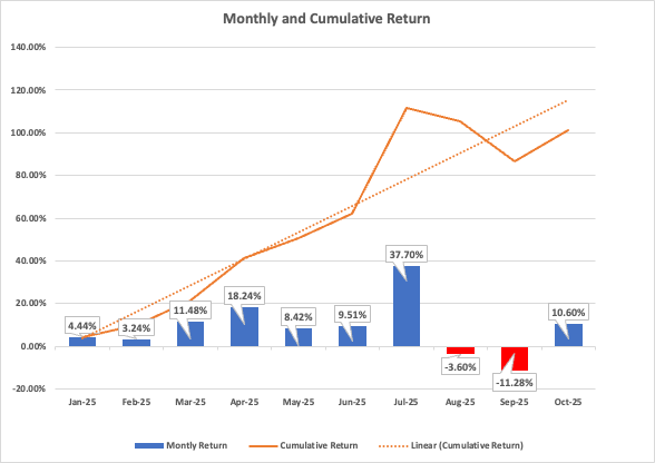 October Performance Recap: monthly return +10.6%, cumulative YTD return +101.22%