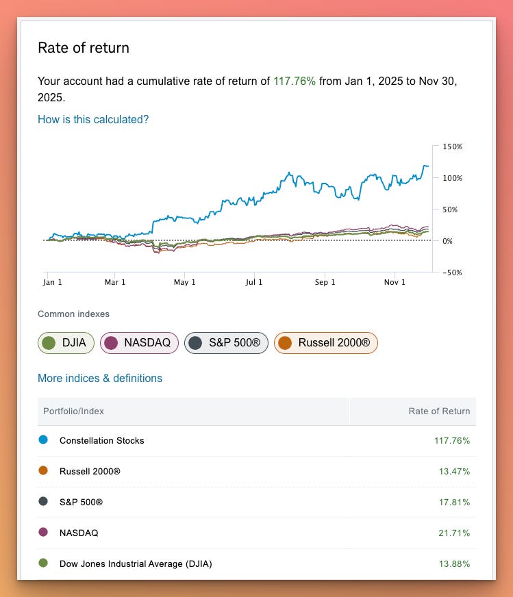 In 2025, I achieved a 117.76% equity growth. This increased my stock account by $208,300.